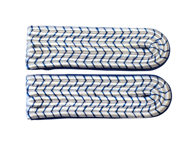 Schulterstücke, 4-streifig, weiß auf blau mit blauem National,