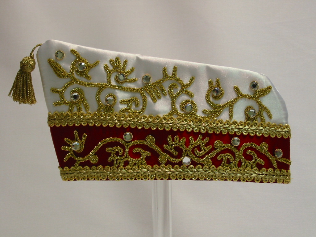 Hochwertige, in unserem Haus gefertigte Damenminiatur aus Atlasseide mit Stickerei und 30 Steinen.