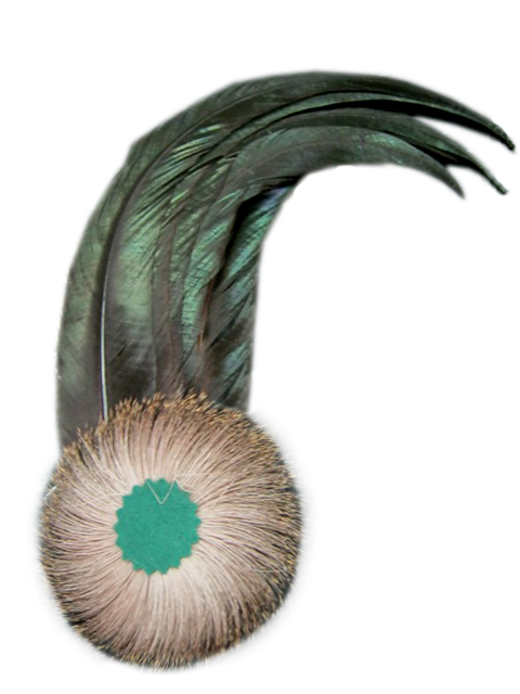 Schützenhutfeder mit 5 bronzegrünen Hahnenschlappen